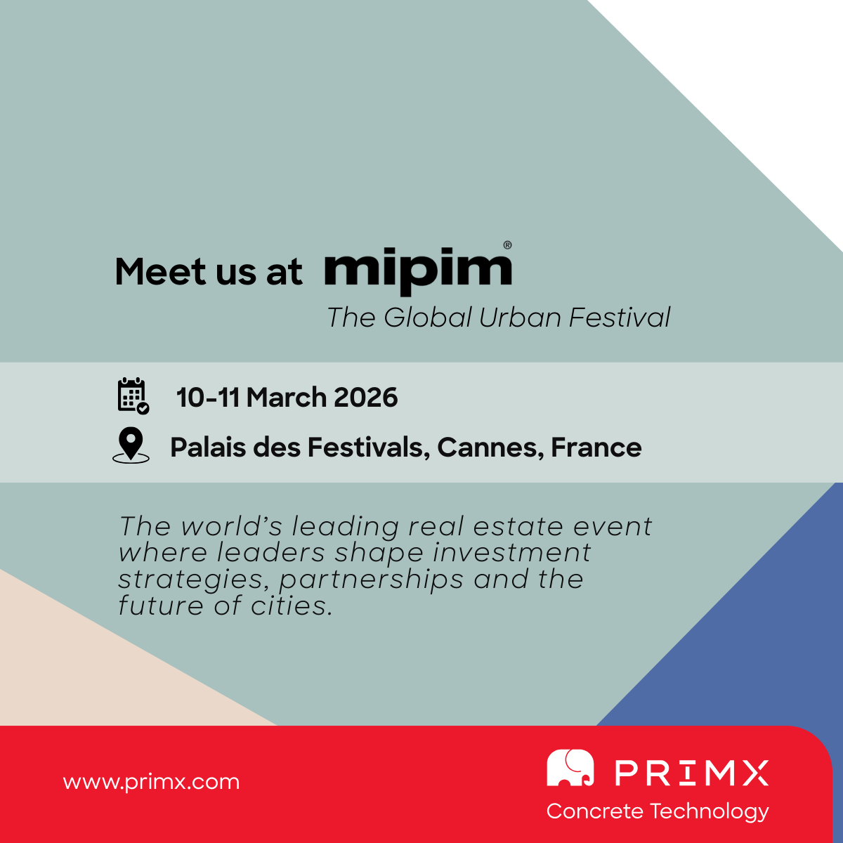 Next week PrīmX® Concrete Technology team will be at MIPIM 2026 in Cannes.